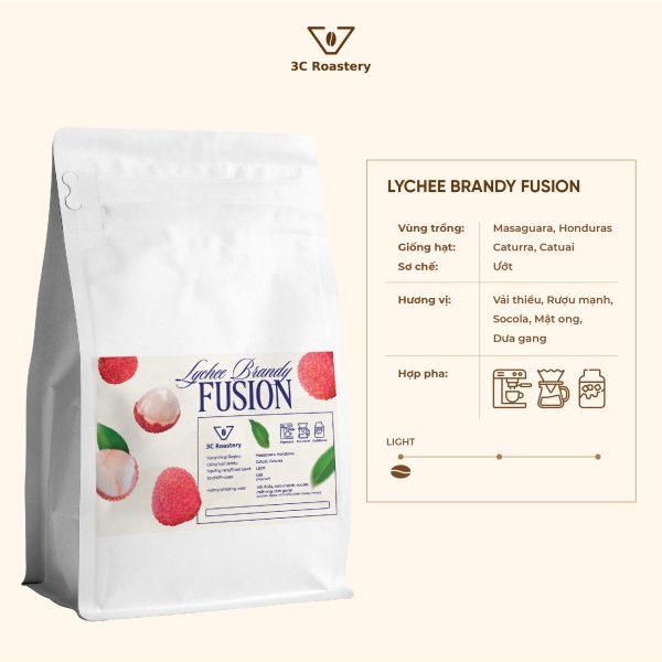 Drinking the Lychee Brandy Fusion Coffee feels like enjoying a premium liquor, with the complexity and variety of flavor layers. This unique characteristic comes from the aging process in oak barrels, where the green coffee beans absorb flavors from the barrel, creating a distinct blend of liquor and coffee aromas.